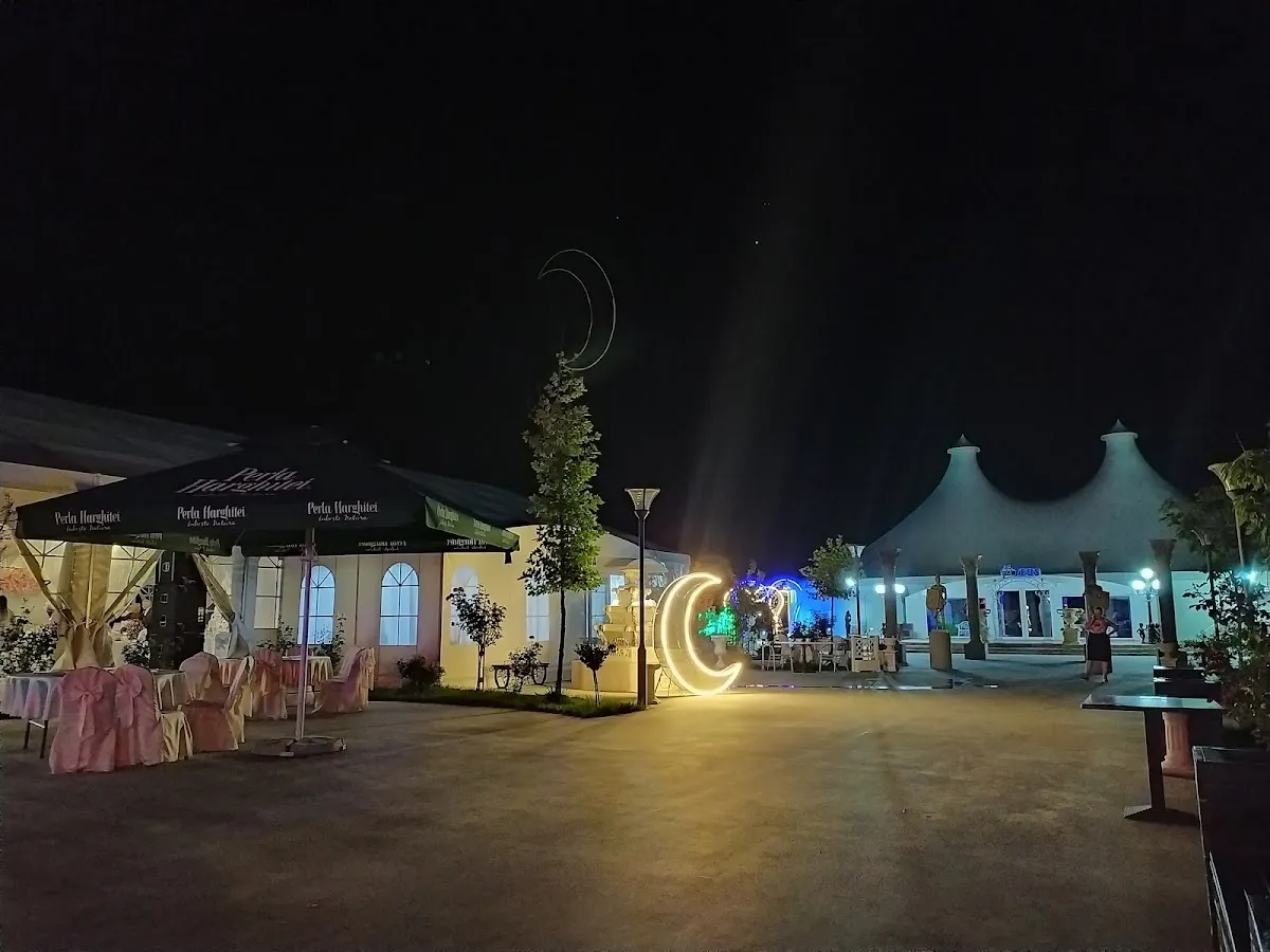 Fiecare cort este dotat cu bucătărie proprie, terasă și spații de socializare pentru invitați. Grădina generoasă, împodobită cu fântâni arteziene și zone verzi, creează o atmosferă de poveste, ideală pentru ceremonii în aer liber, cum ar fi cununiile civile. De asemenea, locația oferă facilități precum parcare generoasă și aranjamente florale incluse în preț.