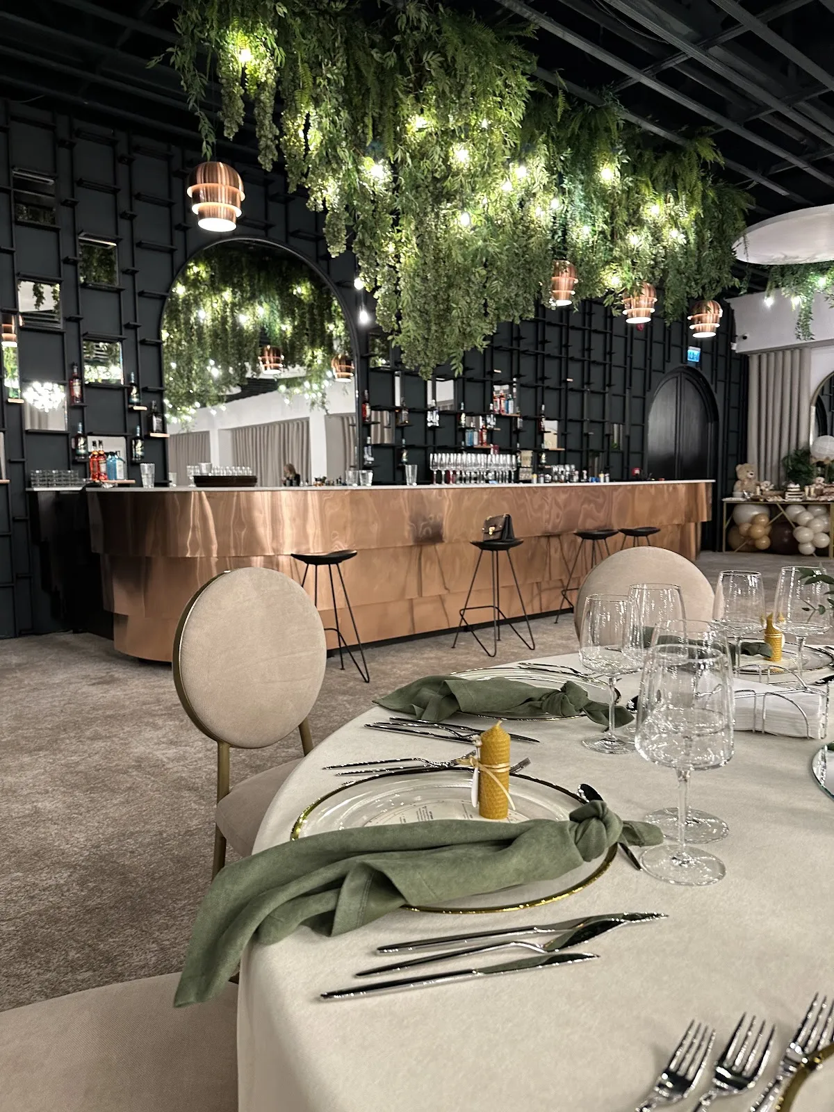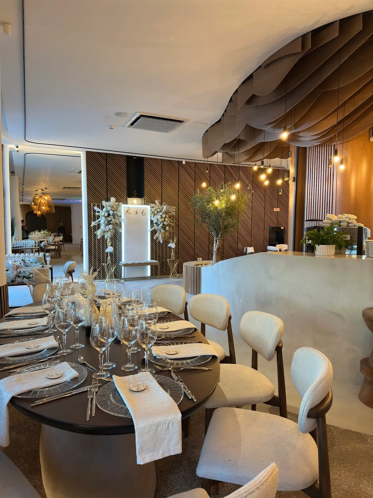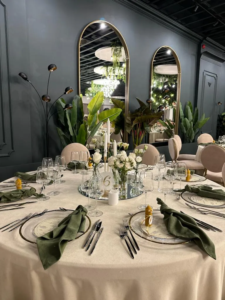 Ambianța de la Aria Events este caracterizată printr-o combinație armonioasă între elemente moderne și detalii clasice, creând un cadru sofisticat și primitor. Spațiul generos permite amenajarea personalizată a sălii, adaptându-se nevoilor și preferințelor fiecărui client.