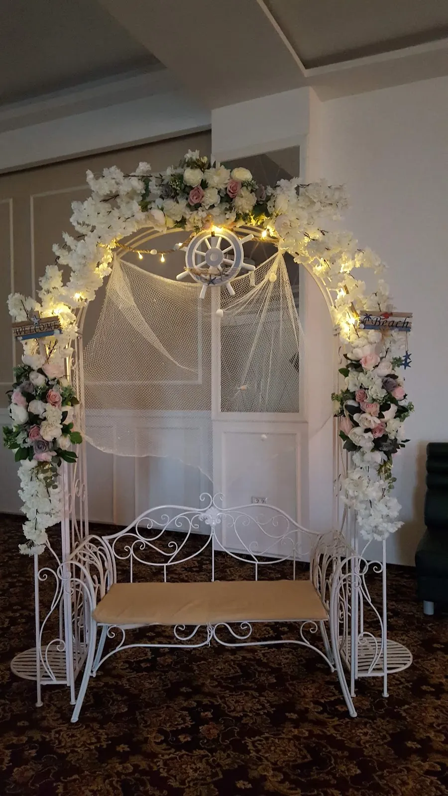 Interiorul sălii este decorat cu candelabre impunătoare și finisaje de înaltă calitate, creând un cadru sofisticat și primitor. Spațiul generos permite aranjamente flexibile ale meselor și ringului de dans, adaptate nevoilor specifice ale fiecărui eveniment.