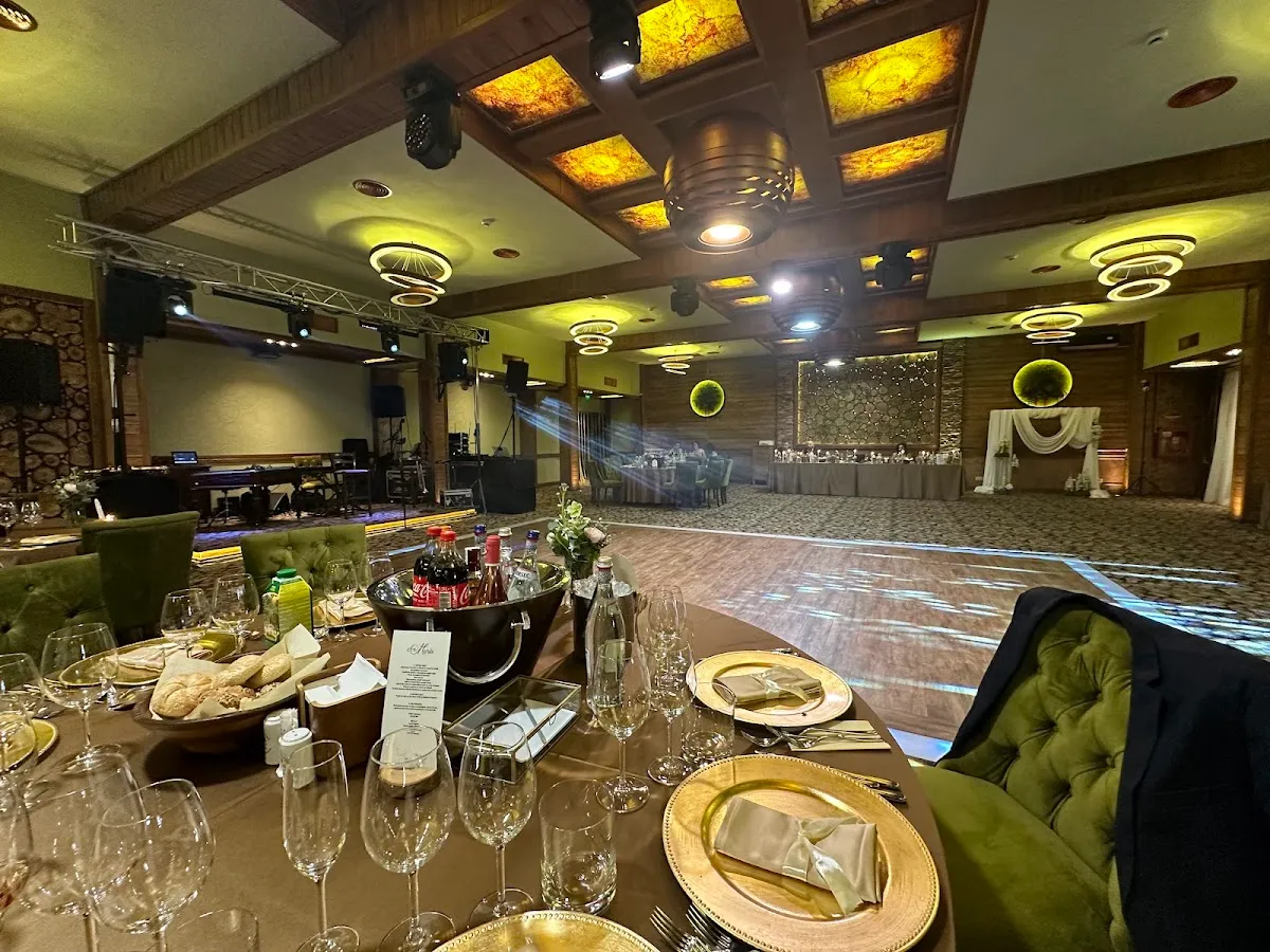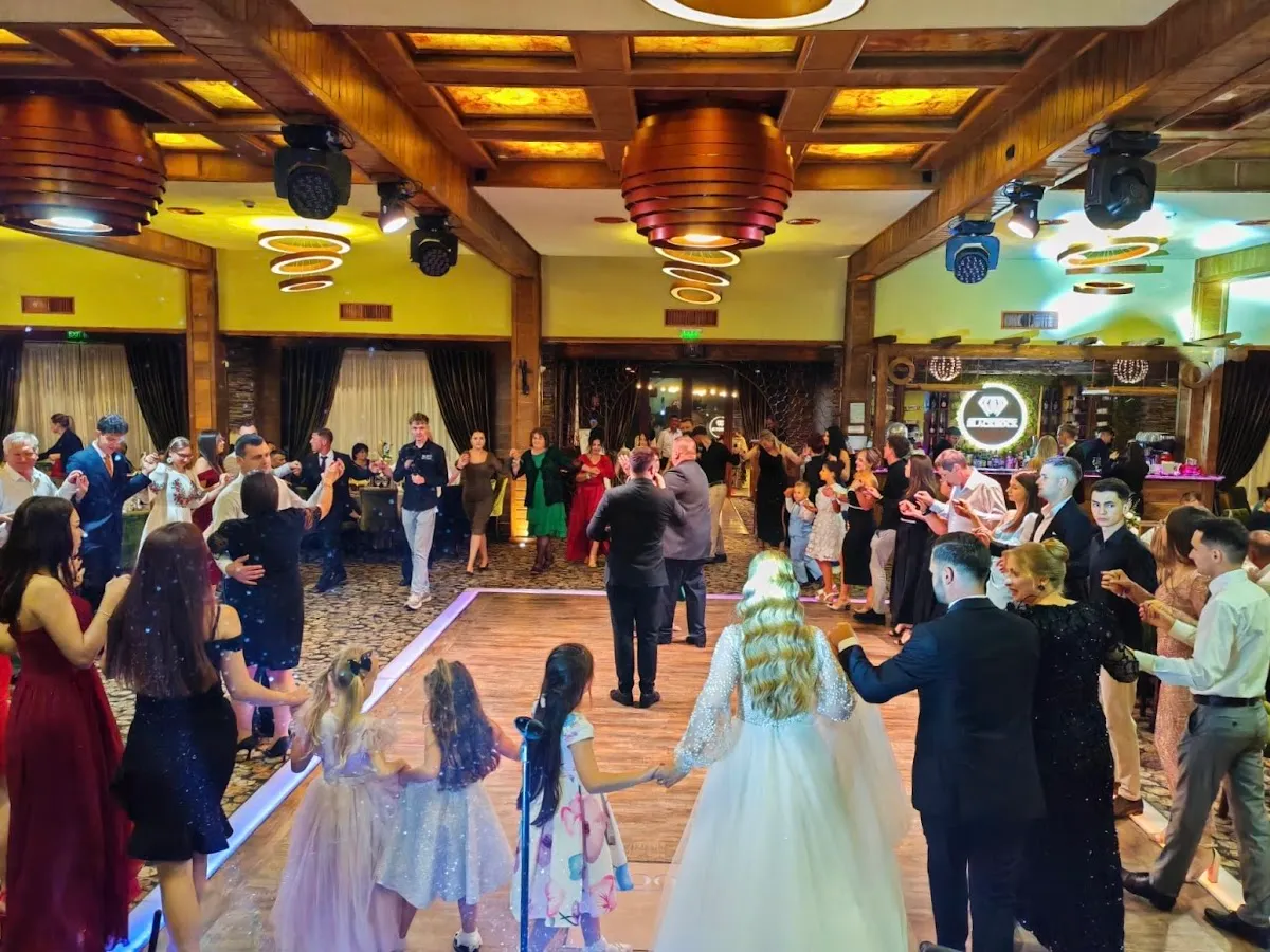 Interiorul sălii este decorat cu bun gust, combinând elemente contemporane cu accente clasice, oferind astfel un decor versatil care poate fi adaptat în funcție de preferințele fiecărui client. Spațiul este bine iluminat, iar ferestrele mari permit pătrunderea luminii naturale, conferind o atmosferă caldă și primitoare.